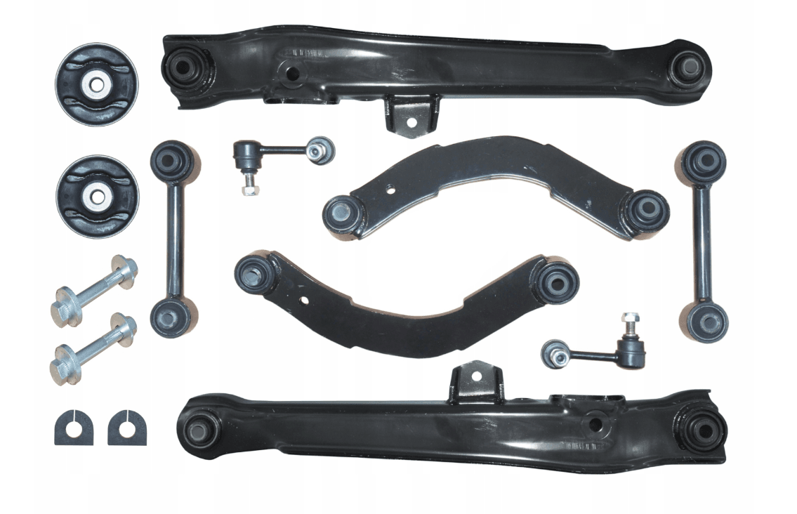 Komplett sett med bærearmer til bakakselen for Nissan X-Trail T30 2001-07. Disse bærearmene sikrer stabilitet, forbedrer kjøreegenskapene og bidrar til lengre levetid for fjæringssystemet. OEM-kompatibel og slitesterk konstruksjon.