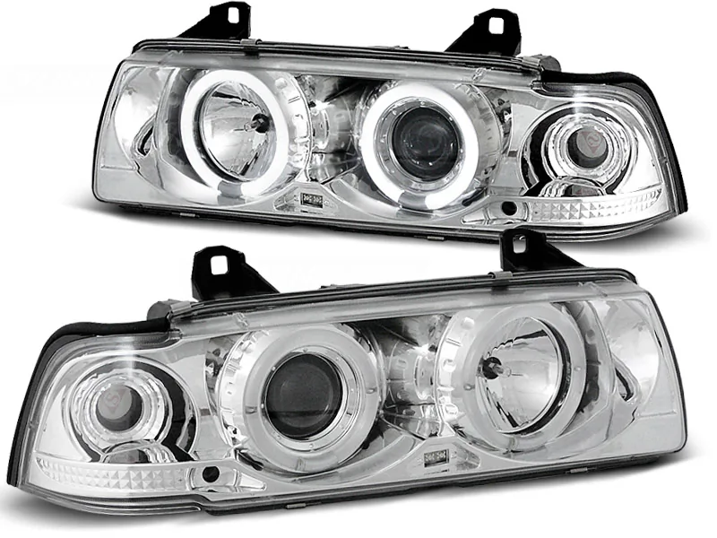 Frontlykter Bmw E36 12.90-08.99 Angel Eyes Chrome Halo Rims