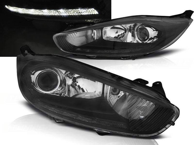 Frontlykter Ford Fiesta MK7 13-16 Led Drl Sort