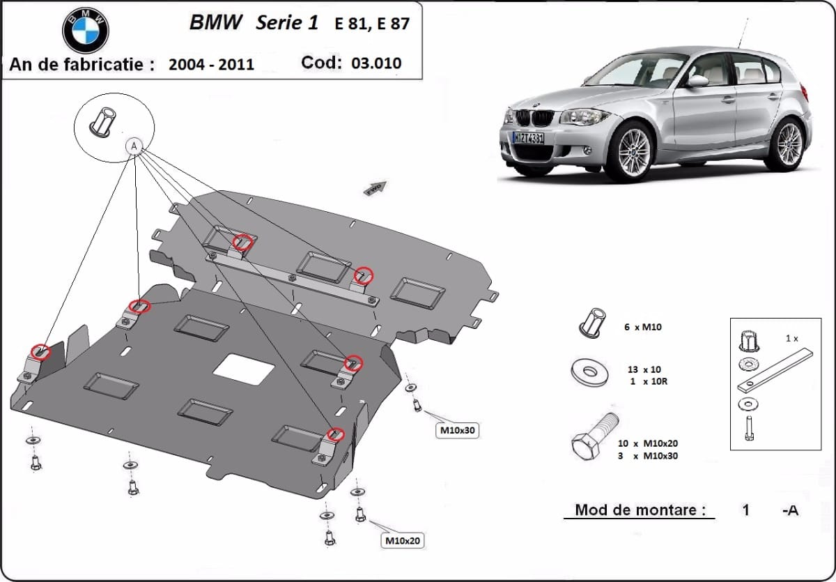 Motordeksel i Stål BMW Seria 1 E81,E87 2004-2011