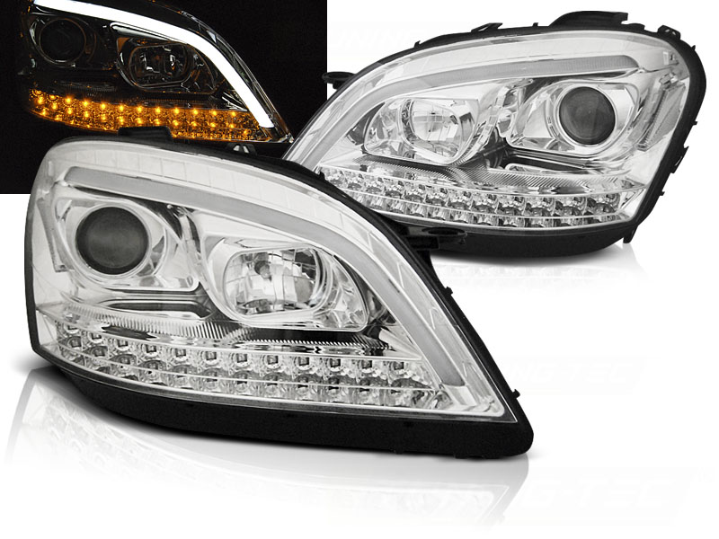 Frontlykter Mercedes W164 ML M-Klasse 05-07 Tube Light Chrome Seq