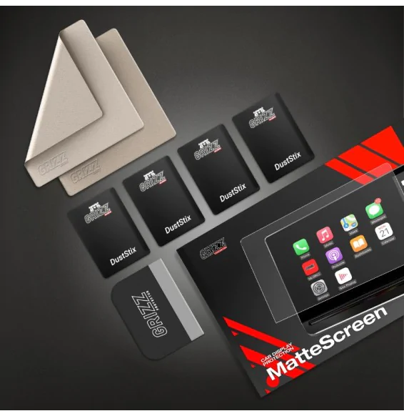 Grizz Glass er en elegant og funksjonell folie designet for å beskytte berøringsskjermer og skjermer i kjøretøy. Med sin matte overflate reduserer folien lysrefleksjoner og skjuler fingeravtrykk, noe som gir en klar og ren skjermopplevelse.