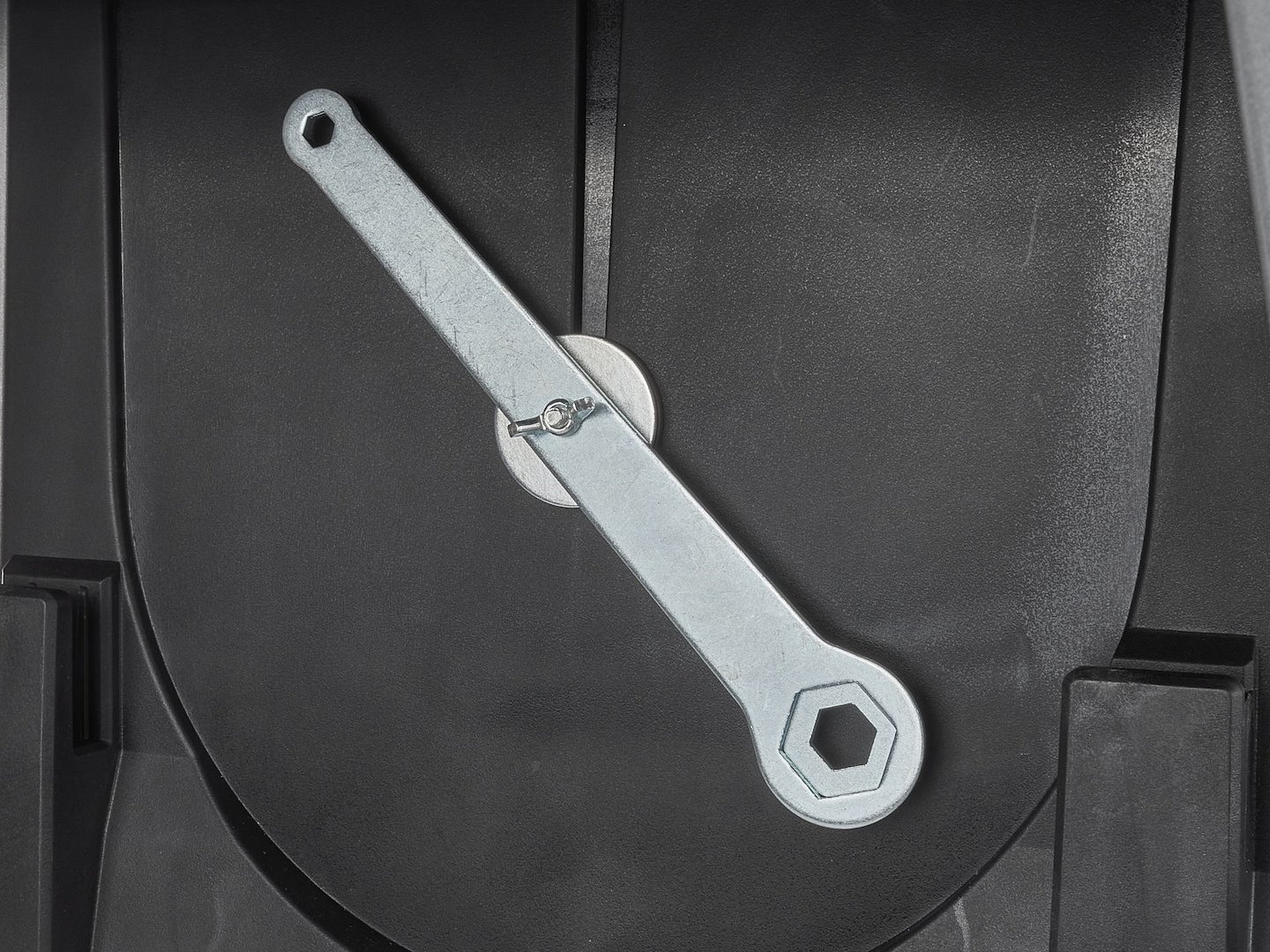 Praktisk oppbevaring av tilbehør – på høyre side av enheten er det et spesielt oppbevaringsrom for skyveren og bladnøkkelen.
