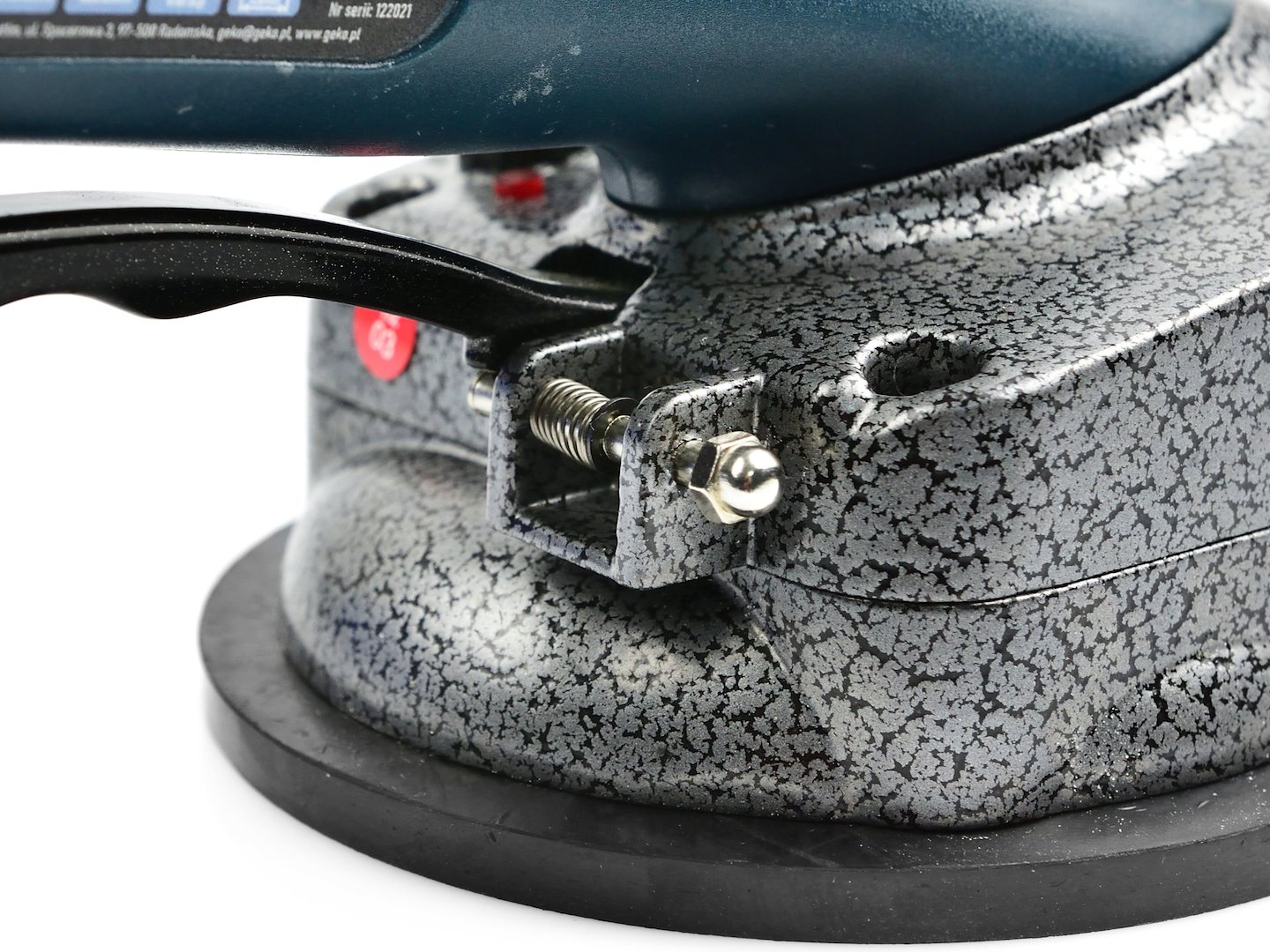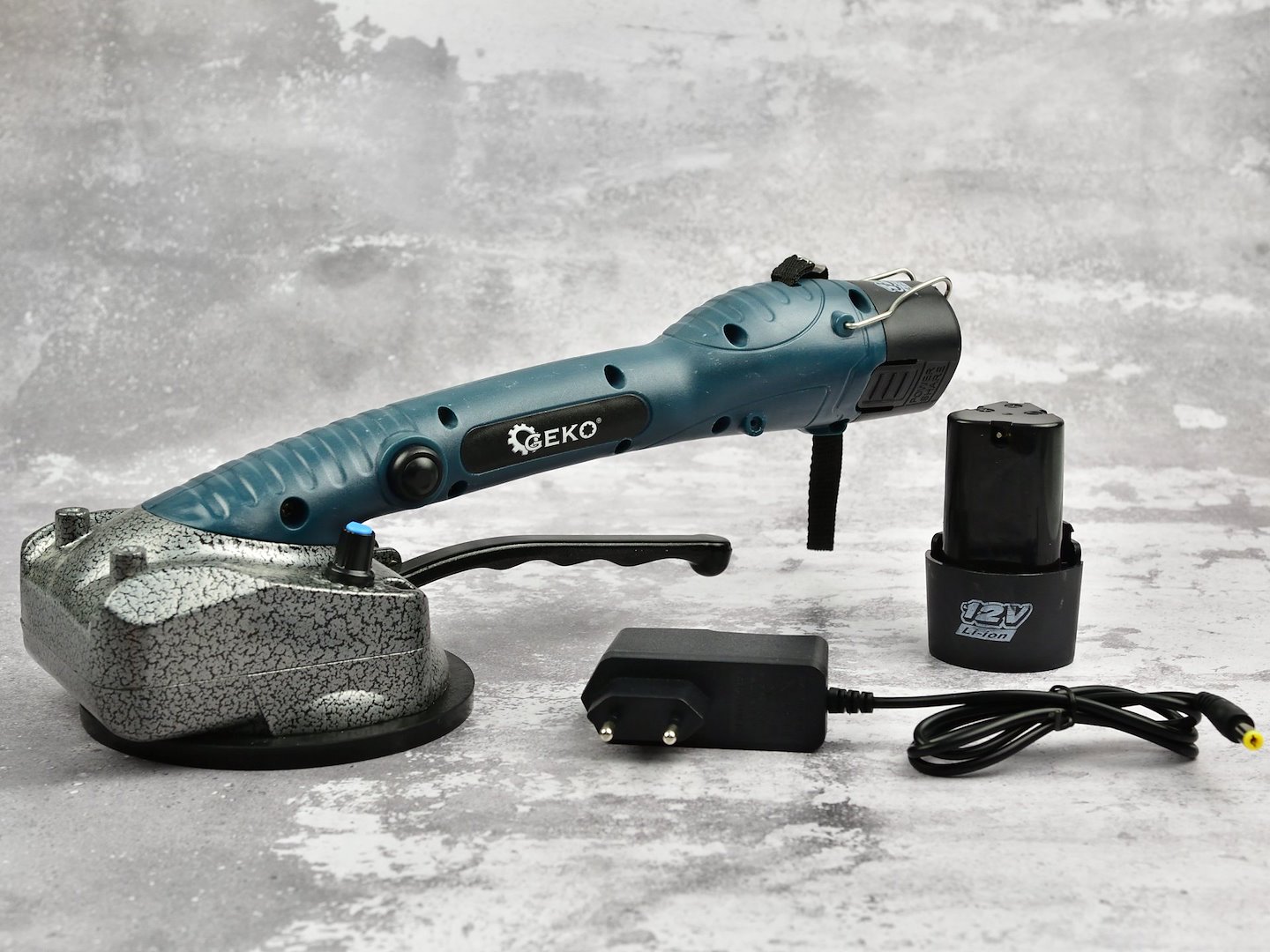 Oppladbar vibrerende sugekopp for flislegging. Utviklet for å overføre og vibrere limet mellom flisen og underlaget for å fordele limet jevnt og fjerne luftbobler. Bruk av den vibrerende sugekoppen forhindrer dannelse av tomme mellomrom mellom flisen og underlaget, noe som sikrer den mest holdbare bindingen mellom flisen og underlaget. Enheten har en knott med 10-trinns vibrasjonskraftjustering. Den robuste sugekoppen lar deg løfte fliser med en maksimal størrelse på 100×100 cm.