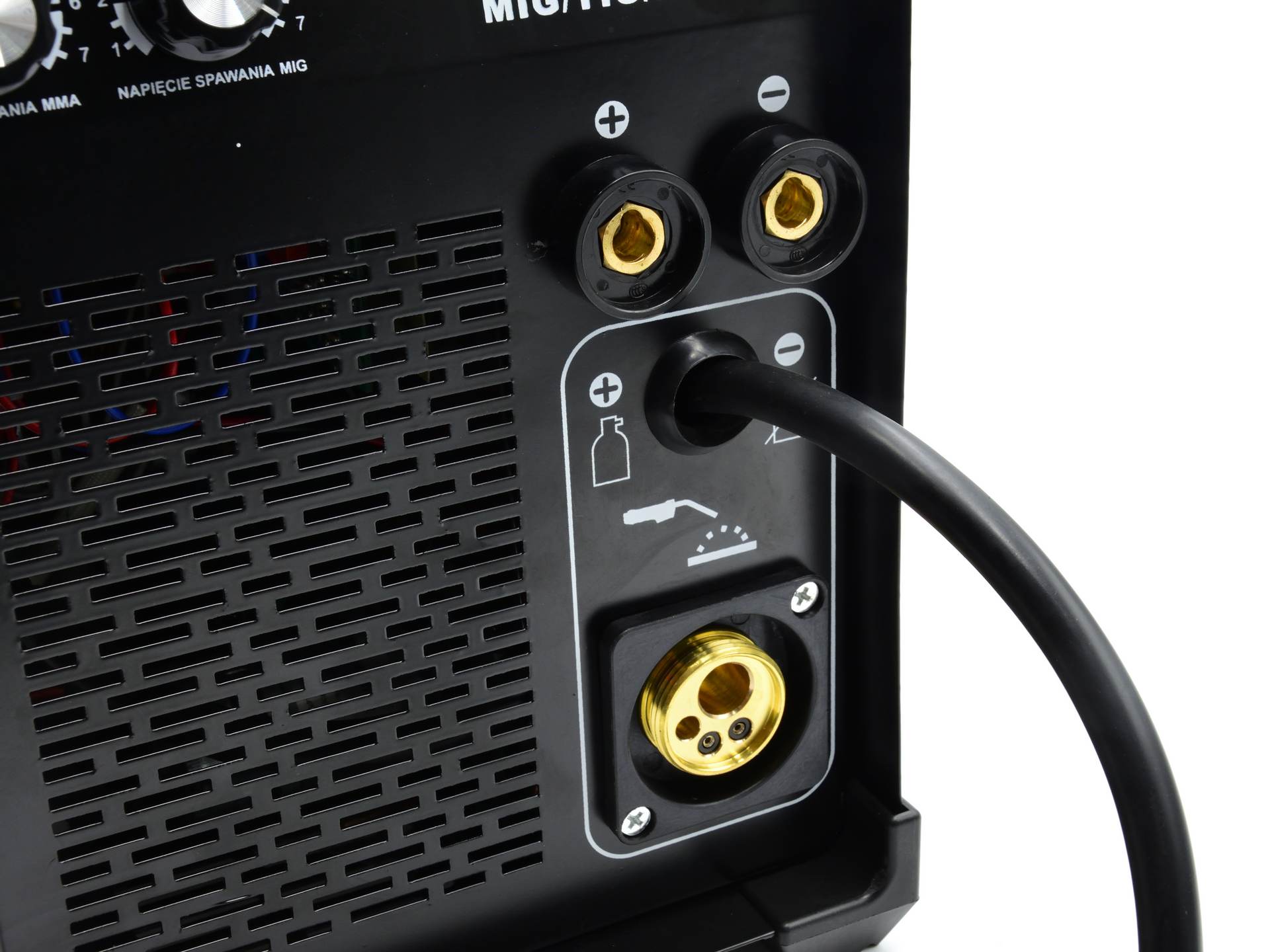 3-i-1-sveisemaskin Denne enheten muliggjør sveising med de mest populære sveisemetodene som: MIG, mmA og TIG (TIG-kabel kreves). Utviklet for sveising av lavkarbonstål, lavlegert stål og legert stål. Denne enheten brukes i metallplatearbeid eller verkstedarbeid.