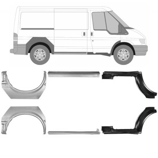 Sett Med Reparasjonsplater Ford Transit 2000-2013 Venstre+Høyre
