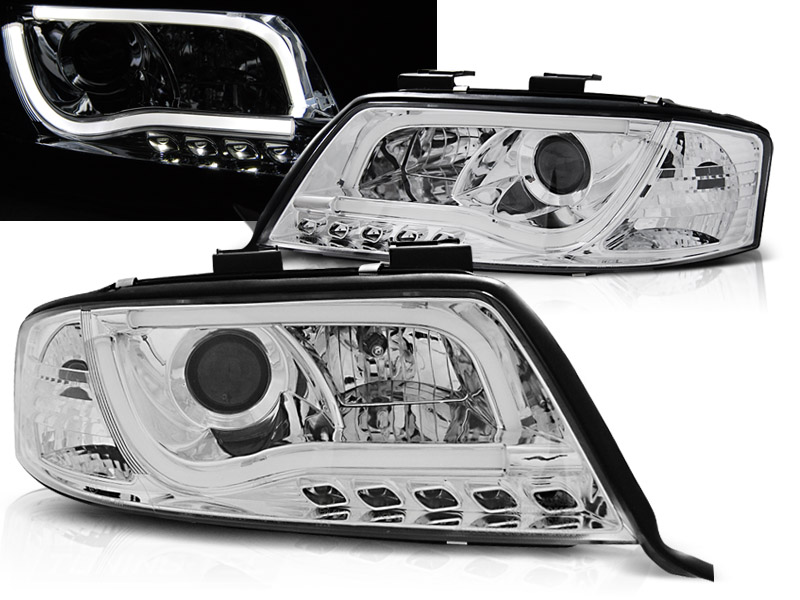 Frontlykter Audi A6 05.97-05.01 Tube Light Chrome