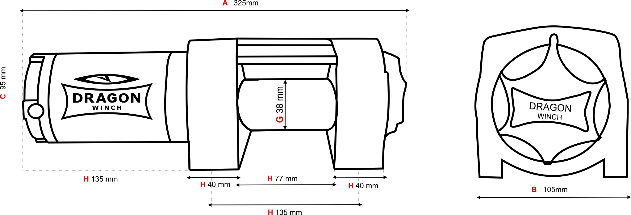 Vinsjdimensjoner (LxBxH): 320 mm x 100 mm x 100 mm